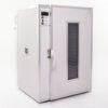 The dryer is equipped with an LED lamp and a double glazed thermally insulated door, thus the drying process can be controlled without door opening, without heat loss. The walls are insulated with polyester, and covered with Glasboard from the outside. The Glasboard is waterproof and hard, as well as easy to clean. It is not attacked by mould or rust and therefore does not corrode.