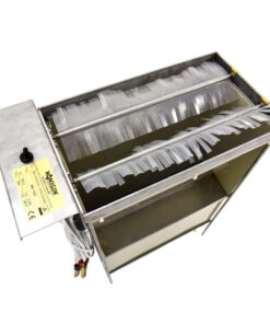 This tool simplifies and improves the process of removing bees from frames, eliminating the need for shaking and brushes, making the task easier and healthier. It consists of two main parts: a stand and the bee remover. This tool is an essential addition to any beekeeper’s equipment, ensuring an efficient, gentle, and health-conscious bee removal process.